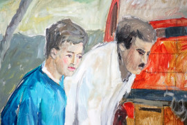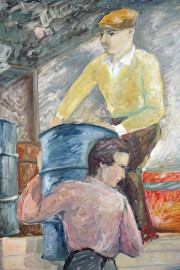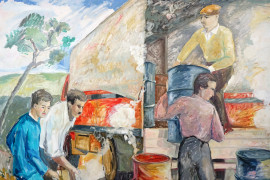 Affossamento di scorie, olio su tela, cm 140x160, entro cornice.