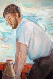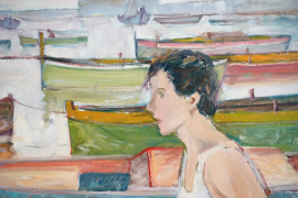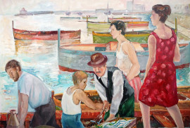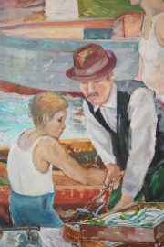 Pesce fresco al porto, olio su tela, cm 148x177, entro cornice.
