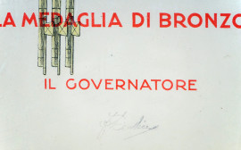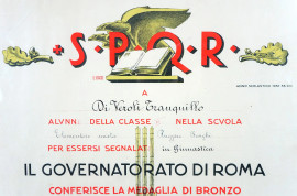 Diploma del Governatorato di Roma per il conferimento della medaglia di bronzo a Di Veroli Tranquillo, anno scolastico 1934-1935, cm 37x54.