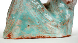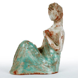 Donna seduta, scultura in ceramica smaltata, cm h19x13x7, firmata