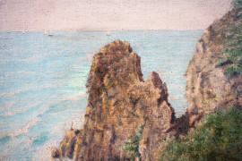 Faraglioni di capri, olio su tela, cm 40,5x44,5, firmato Migliaro, entro cornice