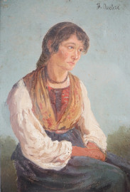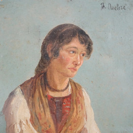Figura di donna, olio su cartone, cm 18x13 circa, firmato Th. Duclere, entro cornice