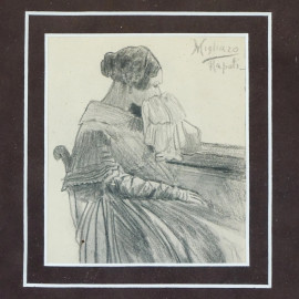 Figura femminile, matita su carta, cm 12x10,5 circa, firmato Migliaro, entro cornice