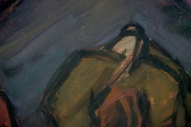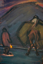 Figure, olio su cartone, cm 55x40, firmato, (difetti)