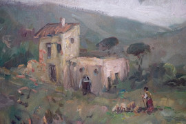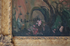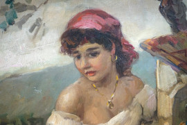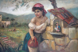 Giovane popolana in sosta all'edicola sacra, olio su tela, cm 50x70, firmato, entro cornice