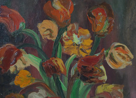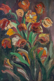 Fiori, olio su tela, cm 80x60, entro cornice.