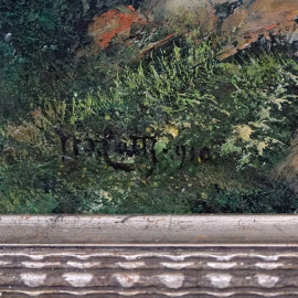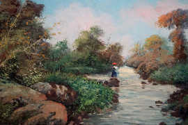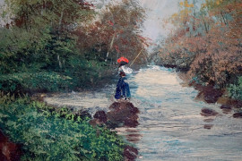 La pescatrice, olio su tela, cm 31,5X49 circa, firmato M. Catti, entro cornice.