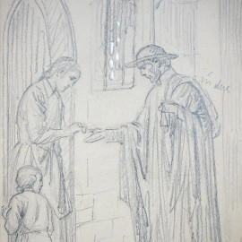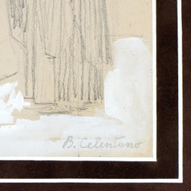 La questura, disegno matita e biacca su carta, cm 22x18, firmato B. Celentano.