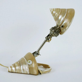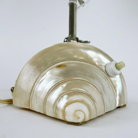Lampada montata con conchiglie in madreperla, cm h 20, XX secolo, (difetti).