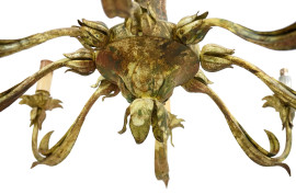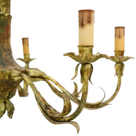 Lampadario a forma di palma in metallo laccato, a sei luci, cm 60, XX secolo, (difetti)