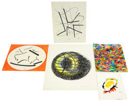 Lotto composto da vari disegni e multipli su carta, soggetti ed autori diversi, misure max cm 54,5x72, (difetti sulla carta).