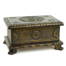 Lotto composto da due oggetti in legno scolpito ed intagliato, misure max cm 38x7x9