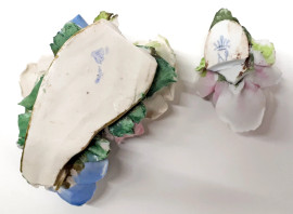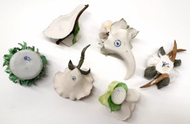 Lotto composto da otto composizioni floreali in porcellana policroma di Capodimonte, solo due presentano delle mancanze