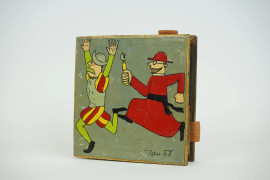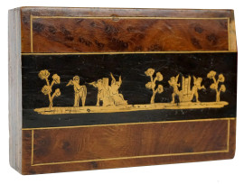 Lotto composto da quattro scatole, un fermacarte, uno svuotatasche, un'agendina ed un portafiammiferi in materiali diversi, misure max cm 18,5x14x4, XX secolo, (difetti).