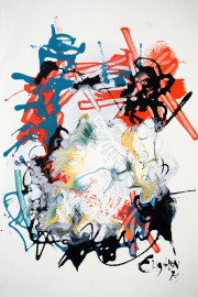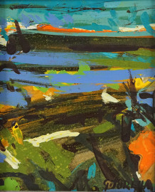 Lotto composto da sei tecniche miste su carta, cartone e tela, misure max cm 35,5x50, (difetti)