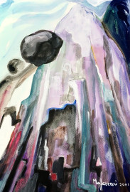 Lotto composto da sei tecniche miste su carta, soggetti e autori diversi, misure max cm 70x49,5