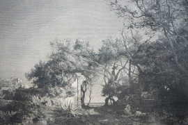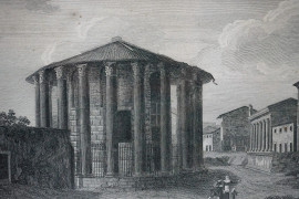 Lotto composto da tre stampe raffiguranti monumenti romani e Villa presso Bordighera, misure max cm 27,5x38,5, XX secolo, entro cornici.
