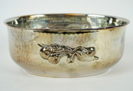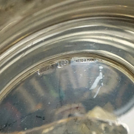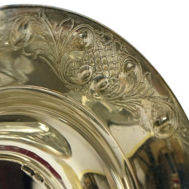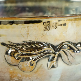 Lotto di due centrini in argento, decori incisi e sbalzati, misure max cm 8x19x14, peso gr.412