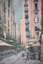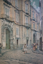 Lotto di sei stampe a colori raffiguranti scorci romani, cm 47x26, entro cornici.