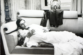 Lotto di sette fotografie raffiguranti Marcello Mastroianni, misure max cm 35x23,5, (difetti)