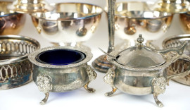 Lotto di vari oggetti in metallo argentato, alt. max cm 16, XX secolo