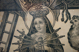 Madonna SS. Addolorata, multiplo su carta, cm 44x3, XIX secolo, entro cornice, (difetti sulla carta).