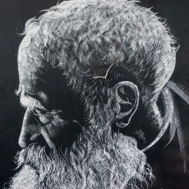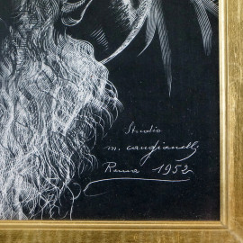 Mario Cangianelli (1902-1973), Volto, papirografia, cm 25x23, entro cornice, (difetti).
