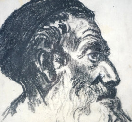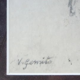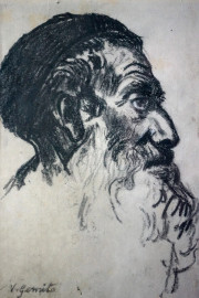 Mastro Ciccio, carboncino su carta, cm 21x14, firmato V. Gemito, entro cornice