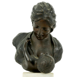 Maternità, scultura in bronzo, cm h 21,5, firmata A.Merente, base in marmo.