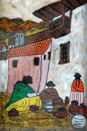 Messicani, olio sottovetro, cm 17x11, XX secolo, entro cornice