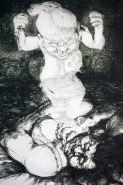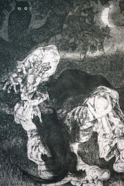 La superstizione salentina, cartella di tre incisioni all'acquaforte dal libro 'Viaggio nella memoria popolare' di Ada Nucita, presentazione di Donato Valli, Edizione d'Arte Mario Adda, cm 70x48,5, (difetti sulla carta)