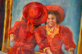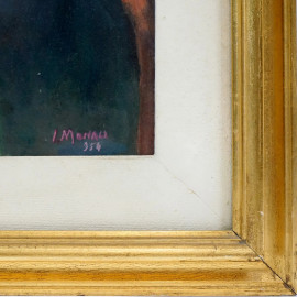 Allo specchio, olio su cartone, cm 61x42, entro cornice.