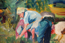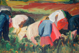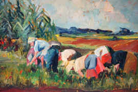 La raccolta dei pomodori, olio su compensato, cm 50x70