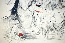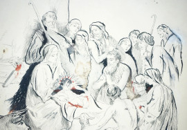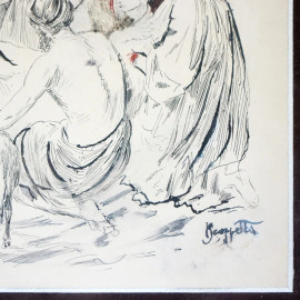 Natività, china su carta, cm 29x24, firmato P. Scoppetta, entro cornice