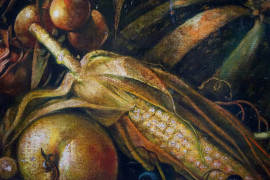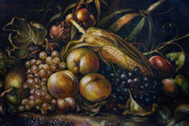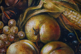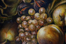 Natura morta con frutta, olio su tela, cm 48x68, firmato, entro cornice.