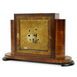 Orologio da tavolo art déco, cassa in legno, quadrante a numeri arabi, cm h 17x26x9, XX secolo, (segni del tempo, meccanismo da revisionare).