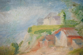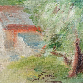 Paesaggio, olio su cartone telato, cm 16x26,5, firmato F.Simi, entro cornice