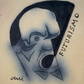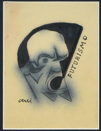 Personaggio futurista, tecnica mista su carta, cm 17,5x12,5, firmato, entro cornice.