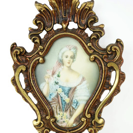 Piccola cornice di linea sagomata in metallo dorato, decorata a motivi rocaille, XX secolo, cm h 33