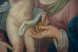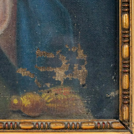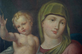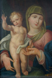 Pittore del XIX secolo, Madonna col Bambino, olio su tela, cm 40x32,5, entro cornice, (difetti).