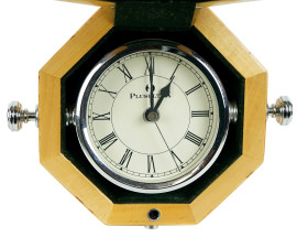 Plusultra, orologio da tavolo, cassa in radica, quadrante a numeri romani, cm h 9,5x17, XX secolo, (meccanismo da revisionare).