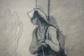 Popolana, carboncino su carta, cm 29x22,5, firmato, entro cornice