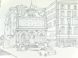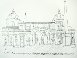 Quattro stampe raffiguranti Fontana del Mosè, Piazza Navona e Santa Maria Maggiore, cm 35x25, firma A. Manotti Bellini, esemplari numerati e siglati a tergo.