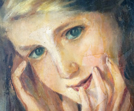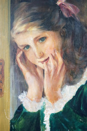 Ritratto di fanciulla, olio su tavola, cm 45x31,5, firmato, (lievi difetti).