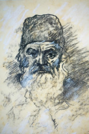 Ritratto di personaggio russo, tecnica mista su carta, cm 19,5x13, firmato A.Issupoff, entro cornice.
