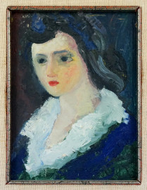 Ritratto di ragazza, olio su tavola, cm 15x11,5, XX secolo, entro cornice