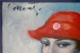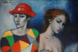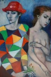 Saltimbanchi, olio su tela, cm 52x40,5, firmato, entro cornice.