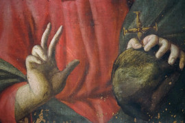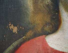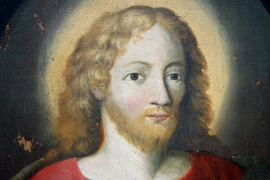 Salvator mundi, olio su tela, cm 64x48,5, XIX secolo, (difetti sulla tela e cadute di colore).