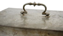 Scatola in ferro, cm 12,5x35x25,5, XX secolo, (difetti, non apribile).