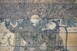 Scena di corteggiamento, china su carta, cm 31x25, arte orientale, entro cornice, (lievi difetti).